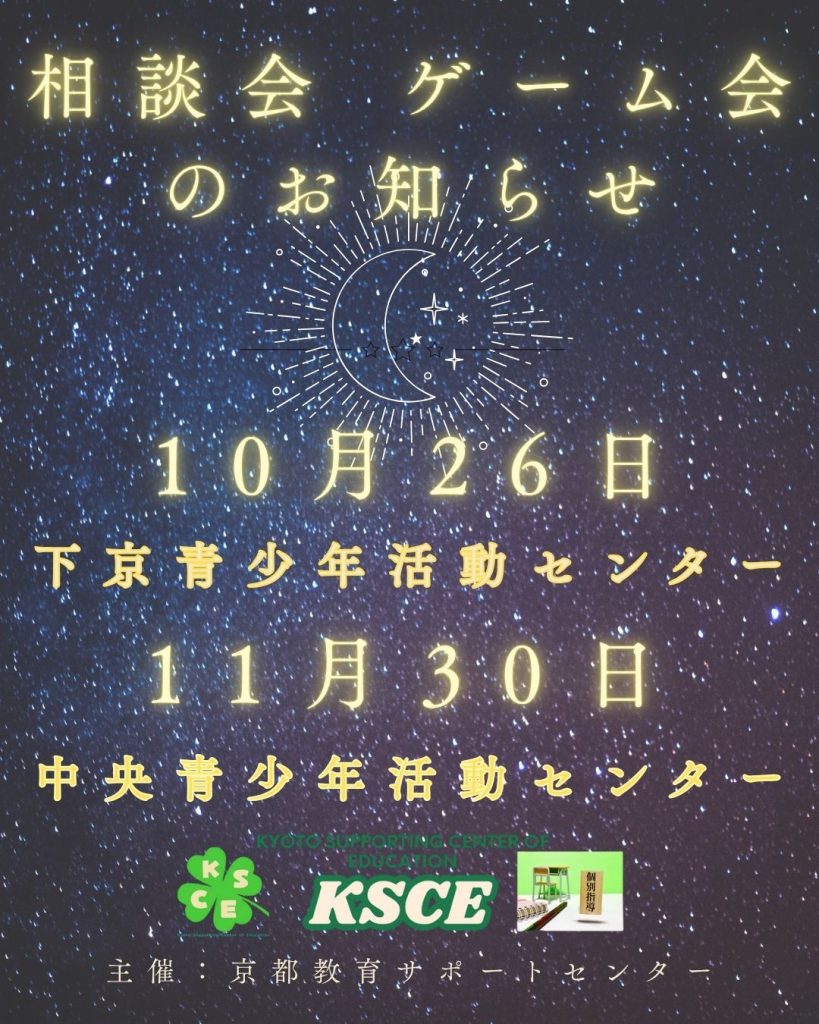 相談会・ゲーム会無料です。お気軽にお越しください。不登校・ひきこもり・発達に関すること、ご家族のご本人へのかかわり方などなんでもどうぞ。