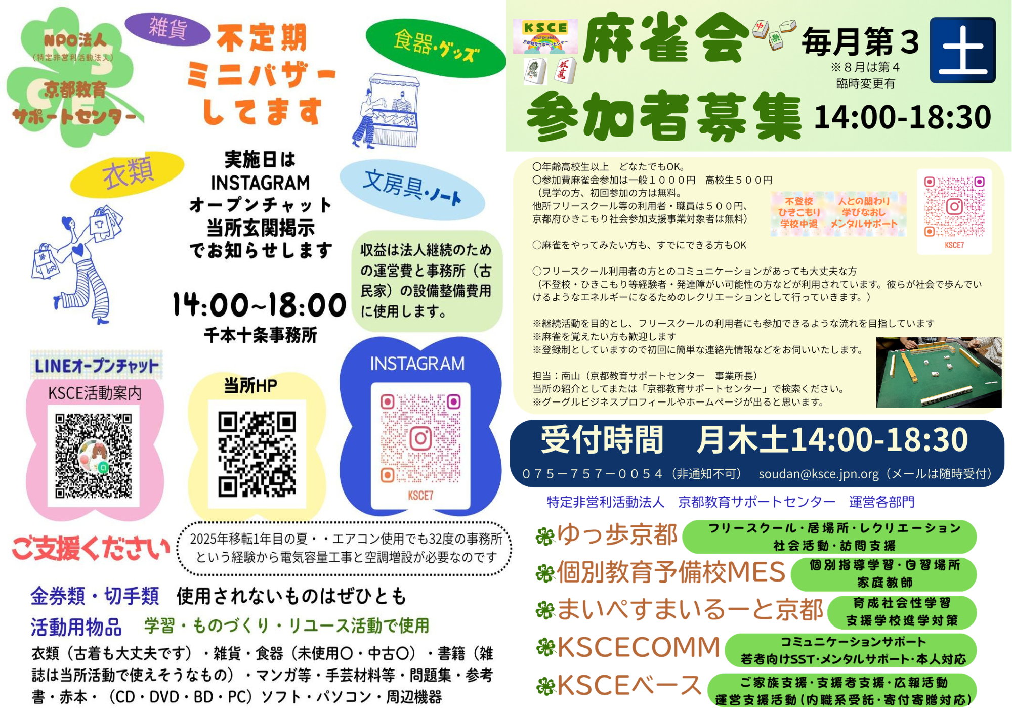 - 烏丸五条サテライトが8月で終了し、千本十条のみで運営体制を再再開しています。それに伴い、ぜひ皆様により一層ご支援をお願いしたいのです。